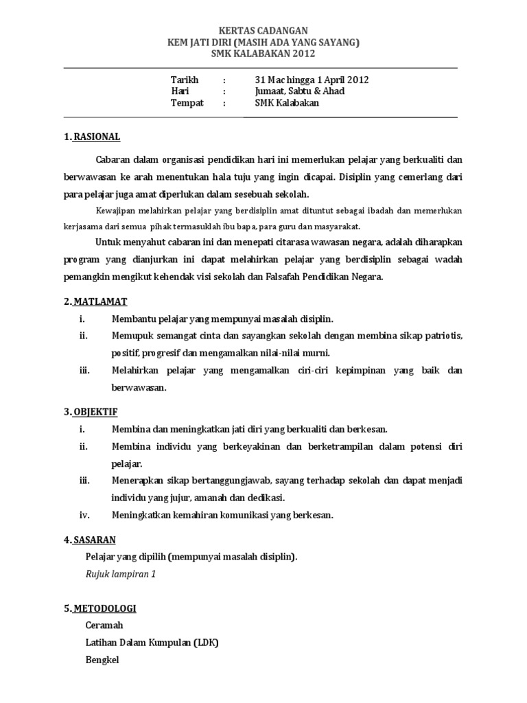 Contoh Kertas Cadangan Kem Jati Diri