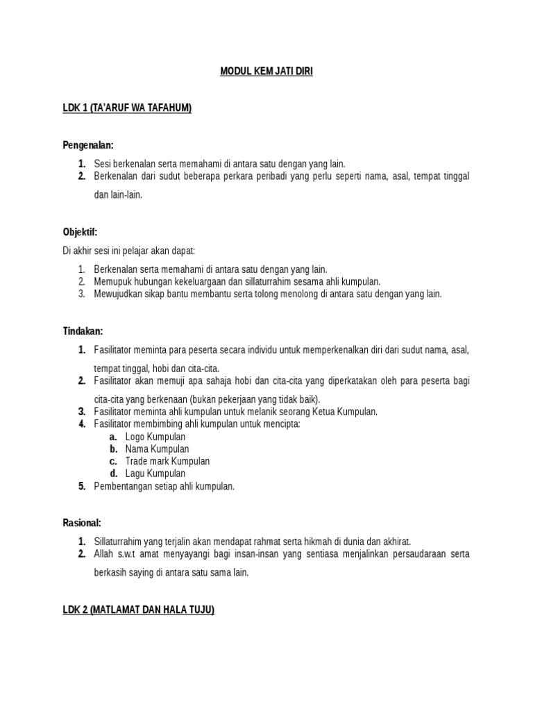 Kertas Kerja Kem Jati Diri Kertas Cadangan Kem Jati Diri Ukhwah Dan Kerjasama Siri 3 Tahun 2016 Tajuk Kem Jati Diri Ukhwah Dan Course Hero