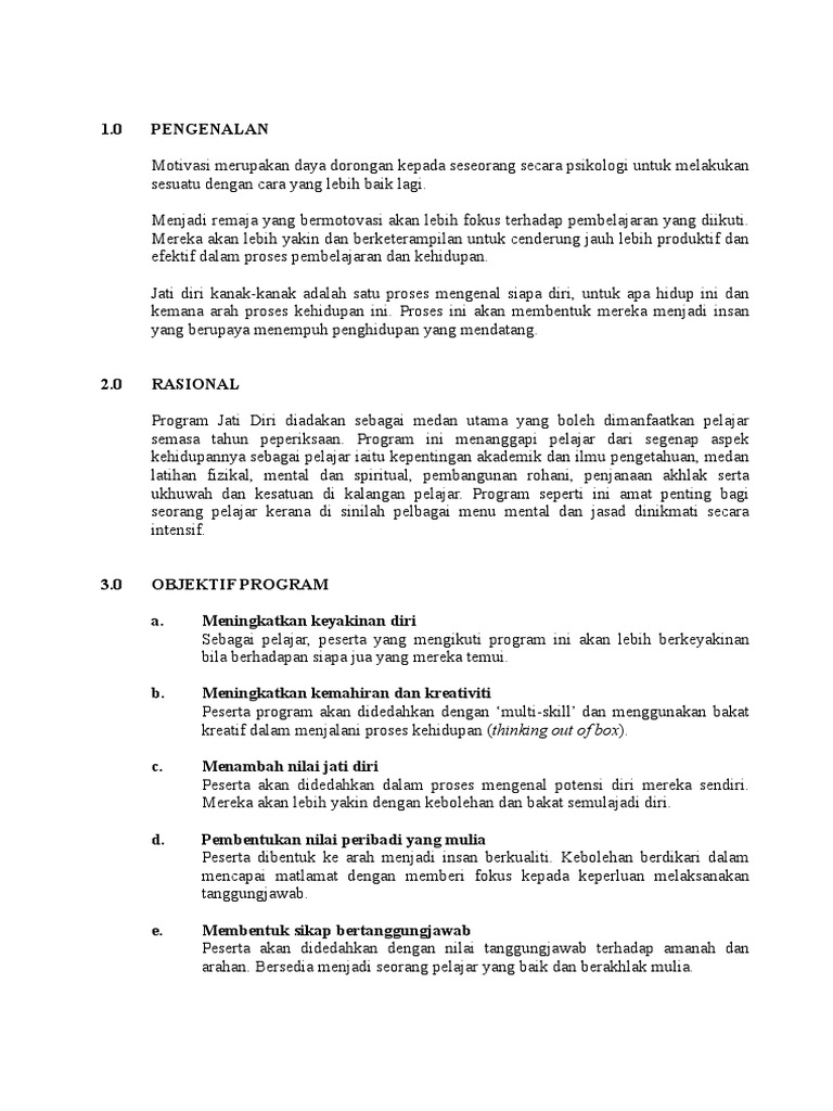 Kertas Kerja Program Jati Diri Pdf